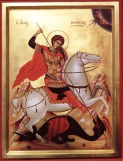Ὡς τῶν Μαρτύρων ταξιάρχην καὶ ἀκρέμονα, καὶ Ἐκκλησίας ἀκατάσειστον θεμέλιον, μακαρίζομέν σε πόθῳ Τροπαιοφόρε. Ἀλλ’ ὡς μέγας ἀρωγὸς ἡμῶν καὶ πρόβολος, ἐν παντὶ ἀντιλαβοῦ καὶ ὑπεράσπισον, τῶν βοώντων σοι, χαίροις Μάρτυς Γεώργιε.