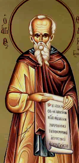 Θείοις στίγμασι, σεσημασμένος, δῶρον ἔμψυχον, τῷ Ζωοδότῃ, προσηνέχθης θεοφόρε Θεόδωρε· ἀσκητικαῖς δωρεαῖς γάρ κοσμούμενος, ὁμολογίας ἀγῶσι διέλαμψας. Πάτερ Ὅσιε, Χριστόν τόν Θεόν ἱκέτευε, δωρήσασθαι ἡμῖν τό μέγα ἔλεος.