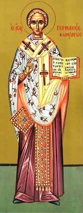Σοφίας τοῖς δόγμασιν, ἐκπαιδευθείς εὐκλεῶς, φωστήρ ἐχρημάτισας, τῆς Ἐκκλησίας Χριστοῦ, ἐν λόγοις καί πράξεσι· σύμμορφος γάρ ὑπάρχων, τῆς εἰκόνος τοῦ Λόγου, λύεις Εἰκονομάχων, τήν ἀντίθεον πλάνην· διό σε Ἱεράρχα Γερμανέ, Χριστός ἐδόξασε