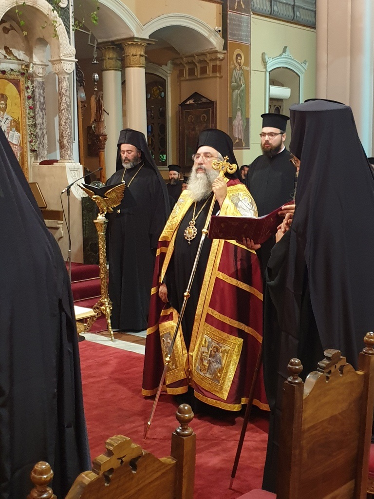 Της Θείας Λειτουργίας προεξήρχε ο Σεβασμιώτατος Αρχιεπίσκοπος Κρήτης κ. Ευγένιος, συλλειτουργούντων Αρχιερέων της Επαρχιακής Συνόδου της Εκκλησίας Κρήτης, του Οικουμενικού Πατριαρχείου και της Εκκλησίας της Ελλάδος, παρουσία τοπικών αρχών και πλήθους πιστών.