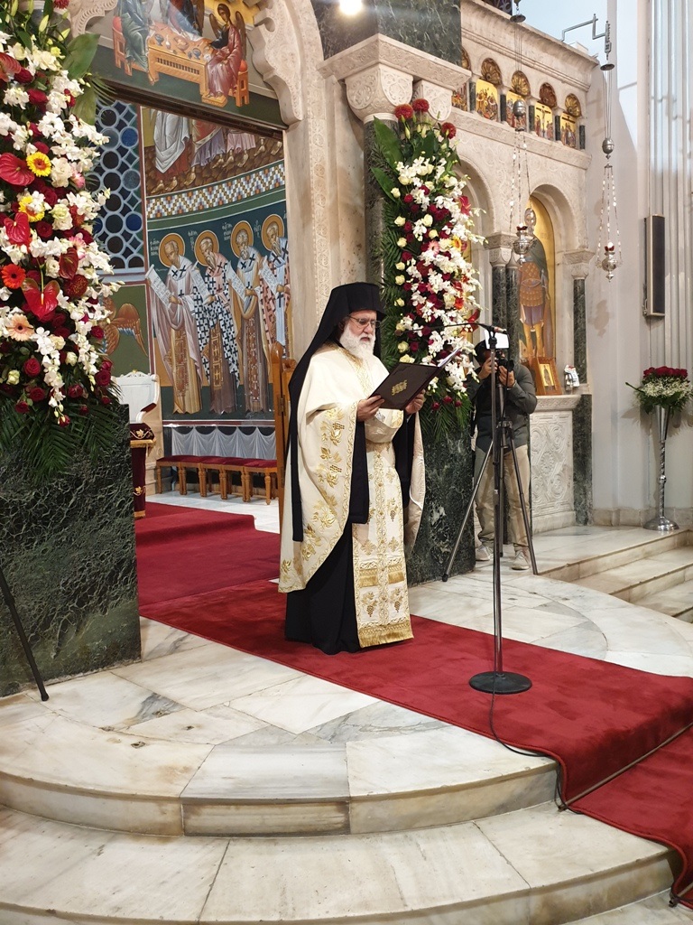 Την Α.Θ.Π. τον Οικουμενικό Πατριάρχη κ.κ. Βαρθολομαίο εκπροσώπησε ο Μέγας Πρωτοσύγκελλος Πανοσιολογιώτατος Αρχιμανδρίτης κ. Θεόδωρος.